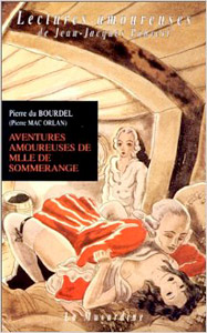 De son grand titre « Aventures amoureuses de Mlle de Sommerange ou Les aventures libertines d’une demoiselle de qualité sous la Terreur », est signé Pierre du Bourdel et publié une première fois à Paris au début du siècle, puis supposément au Québec en 1910 et entre 1913 et 1914. Rapidement, le livre a été condamné à la destruction par une cour d’assises française en octobre 2013. L’édition originale contenait sept illustrations signées sous son nom véritable par Louis Malteste. La petite édition de poche que voici, à prix économique, n’offre malheureusement pas ces illustrations « clandestines ».