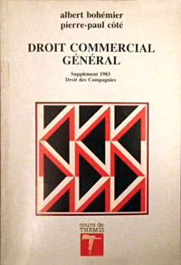 Noté comme un « Supplément 1983 Droit des compagnies », ce petit volume constitue une mise à jour de la partie II du volume principal Droit commercial général (deuxième édition) publié par les mêmes auteurs en 1979.