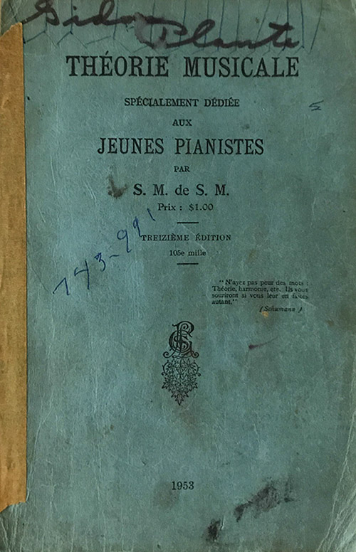 Rédigé par Soeur Marie de Saint-Mathieu (S. M. de S. M.), 1873-1943, le petit volume classique — un best seller ! — à couverture bleue expose tout l’enseignement musical sous forme de brèves questions et réponses. Une somme de connaissances techniques organisées par thèmes et chapitres :